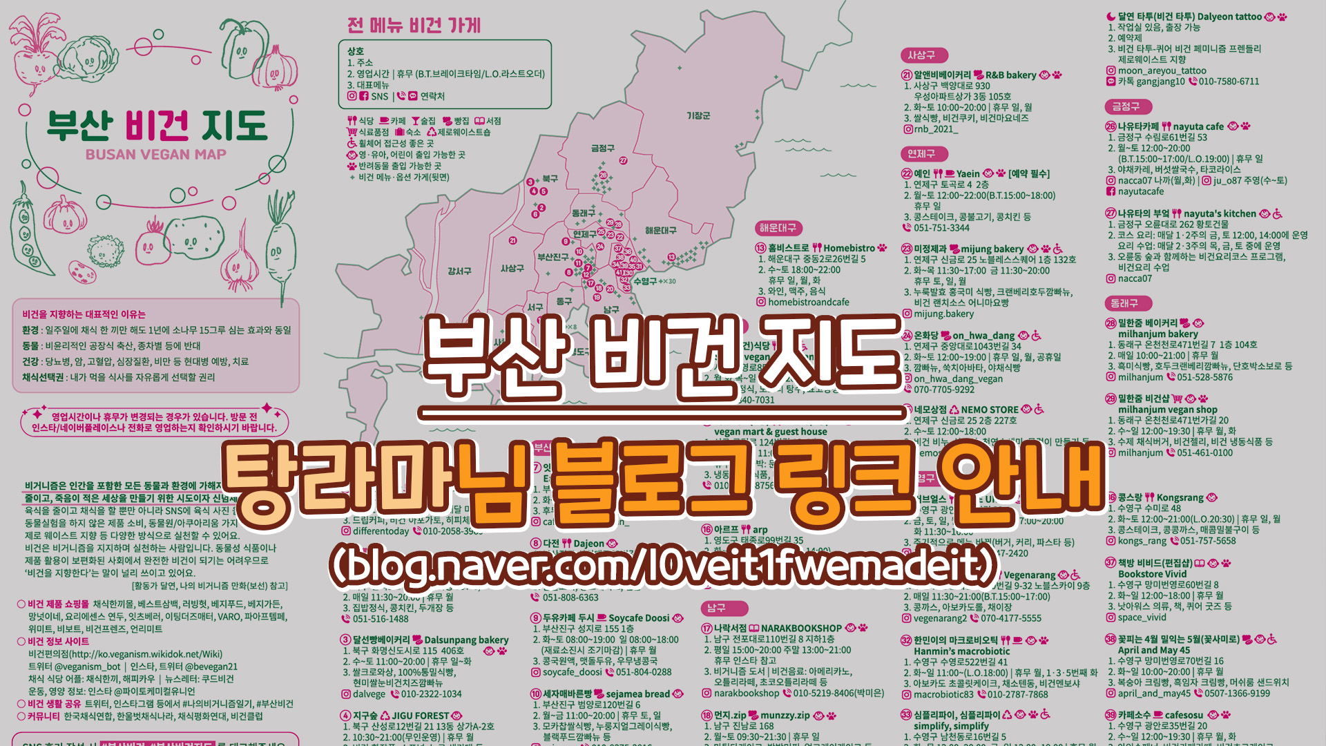 부산 비건 지도, 탕라마 님의 블로그에서 다운받으세요~(◕‿◕) / 부산비건식당, 부산비건카페, 부산비건빵집, 부산비건술집, 부산제로웨이스트숍 등이 잘 안내되어 있습니다.