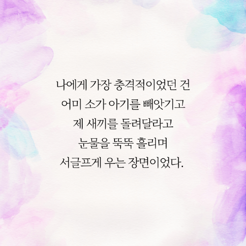 나에게 가장 충격적이었던 건 어미 소가 아기를 빼앗기고 제 새끼를 돌려달라고 눈물을 뚝뚝 흘리며 서글프게 우는 장면이었다.