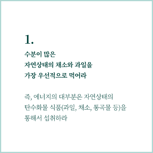 - 가능한 한 자연 상태의 식물성 식품을 그대로 섭취합니다.